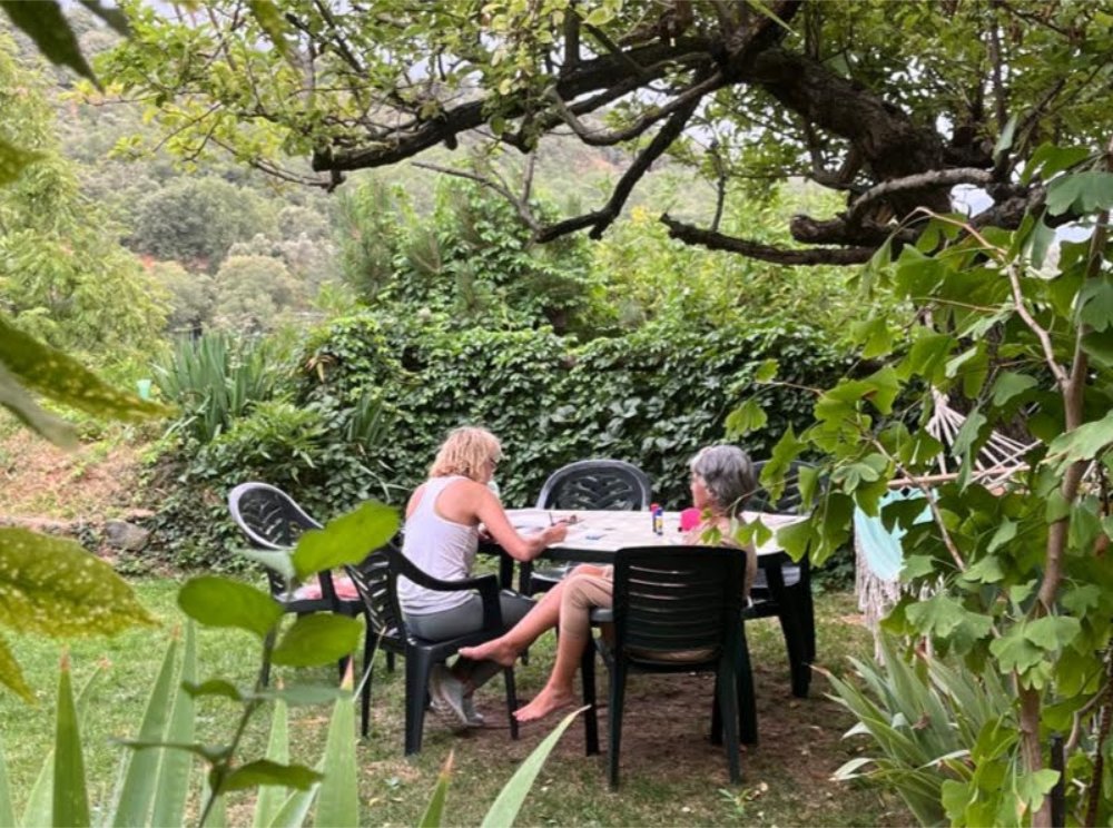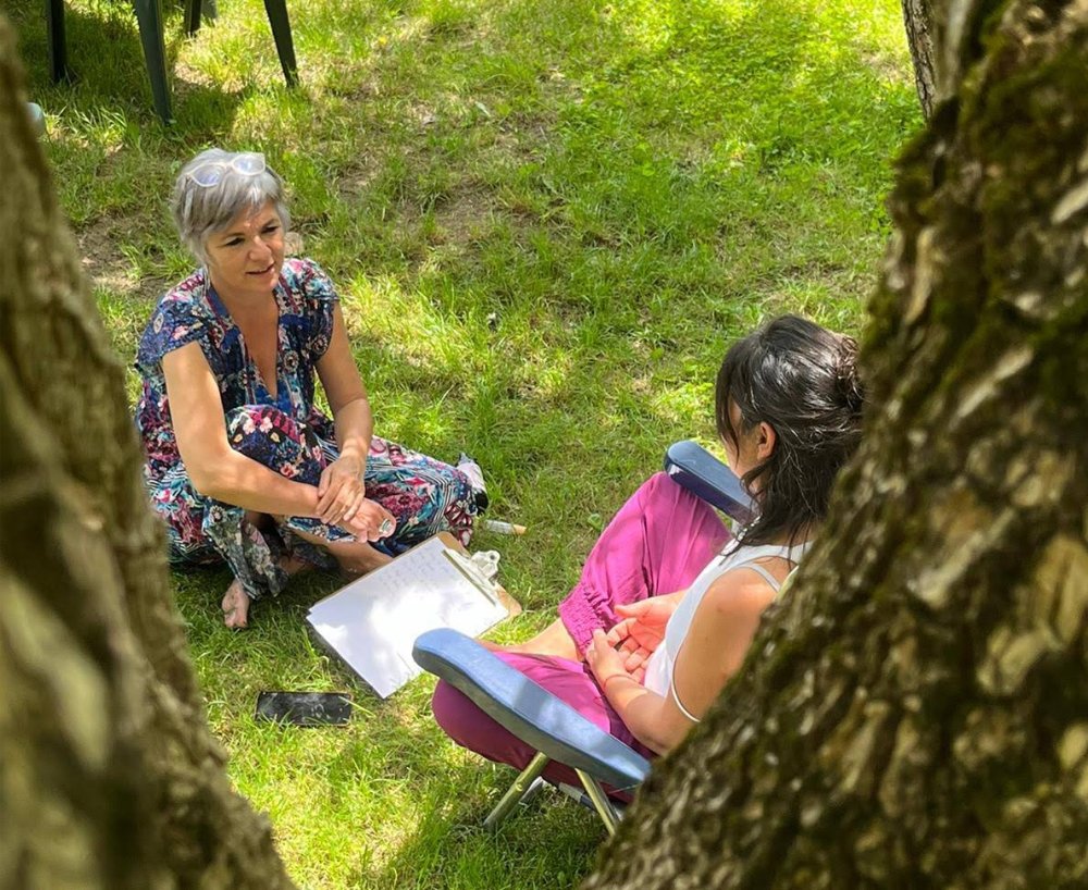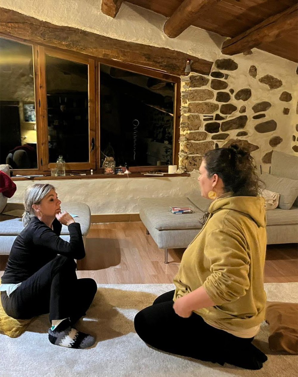 Aquí el entorno no es solo un marco, sino una parte activa del proceso. El contacto con la tierra, el silencio del bosque, el sonido del agua y el ritmo natural del lugar acompañan el trabajo terapéutico de forma espontánea y profunda.