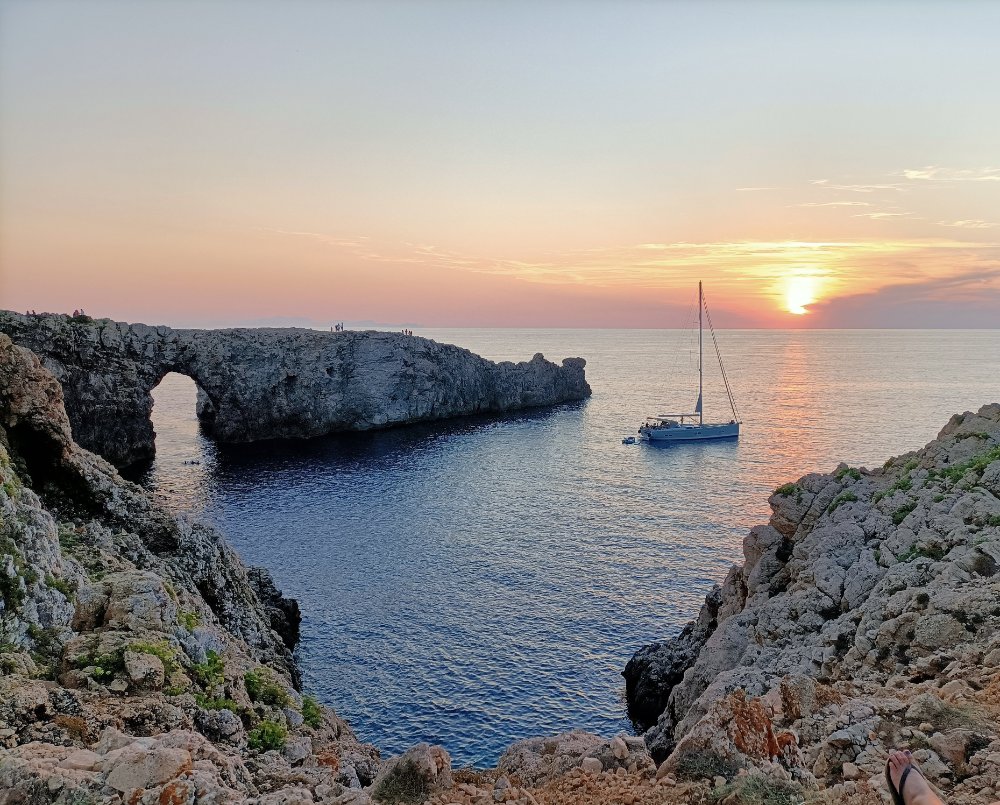 Bajaremos a tierra para explorar la Menorca auténtica, alejándonos de las zonas turisticas y los pueblos concurridos. Nos sumergiremos en la naturaleza virgen de la isla, recorriendo senderos poco transitados y descubriendo calas escondidas. Andreu, con su conocimiento y pasión por la isla, nos guiará por estos espacios naturales que revelan la verdadera esencia y belleza de este rincón mediterráneo. Sus explicaciones dan contexto a construcciones milenarias, flora y fauna autóctona y tradiciones que han forjado la identidad menorquina. Al atardecer, nos detendremos para contemplar las puestas de sol sobre el mar, un momento que invita naturalmente a la reflexión y la presencia. Y por la noche, lejos de la contaminación lumínica, el cielo estrellado se mostrará con una claridad excepcional.