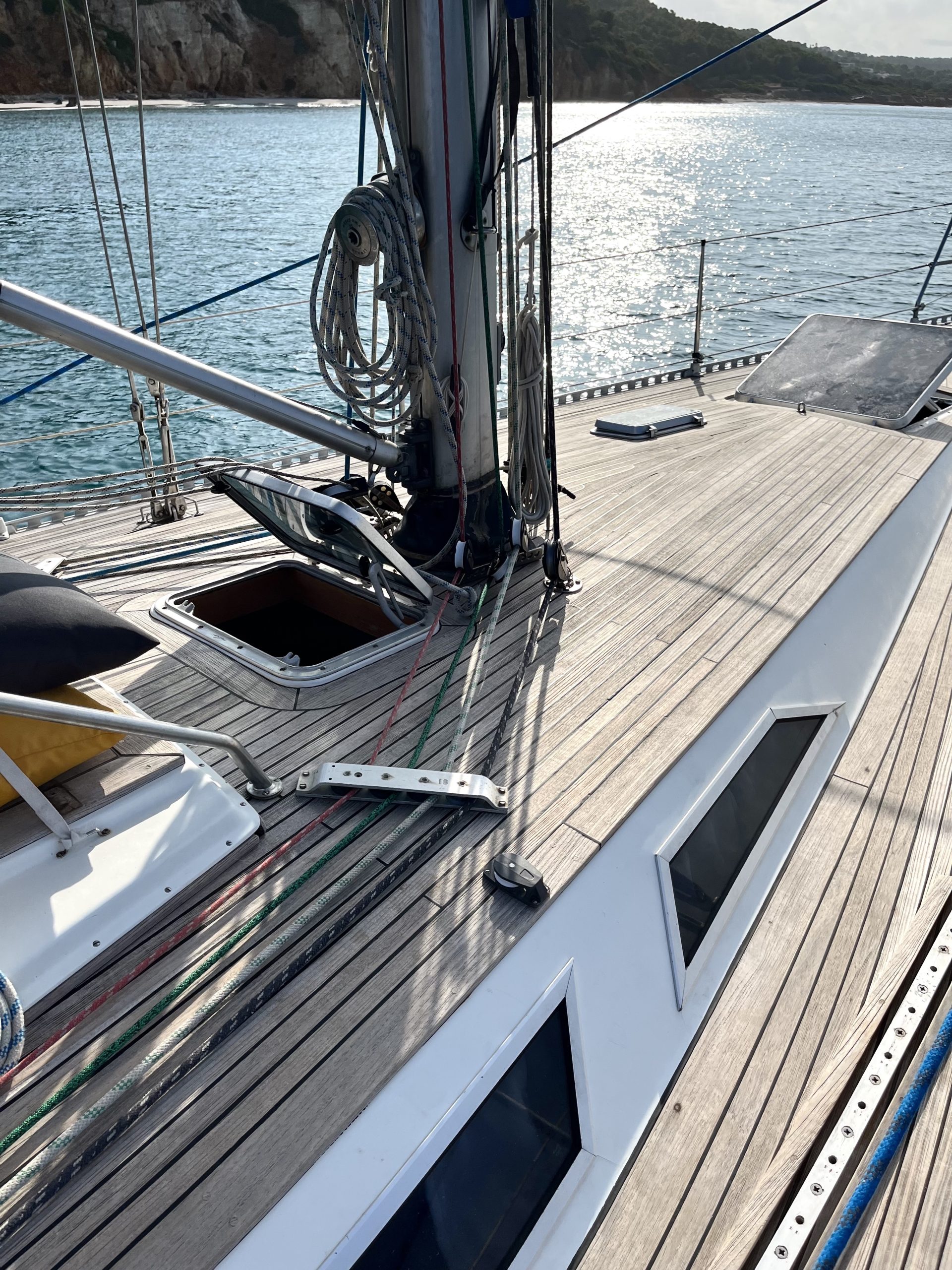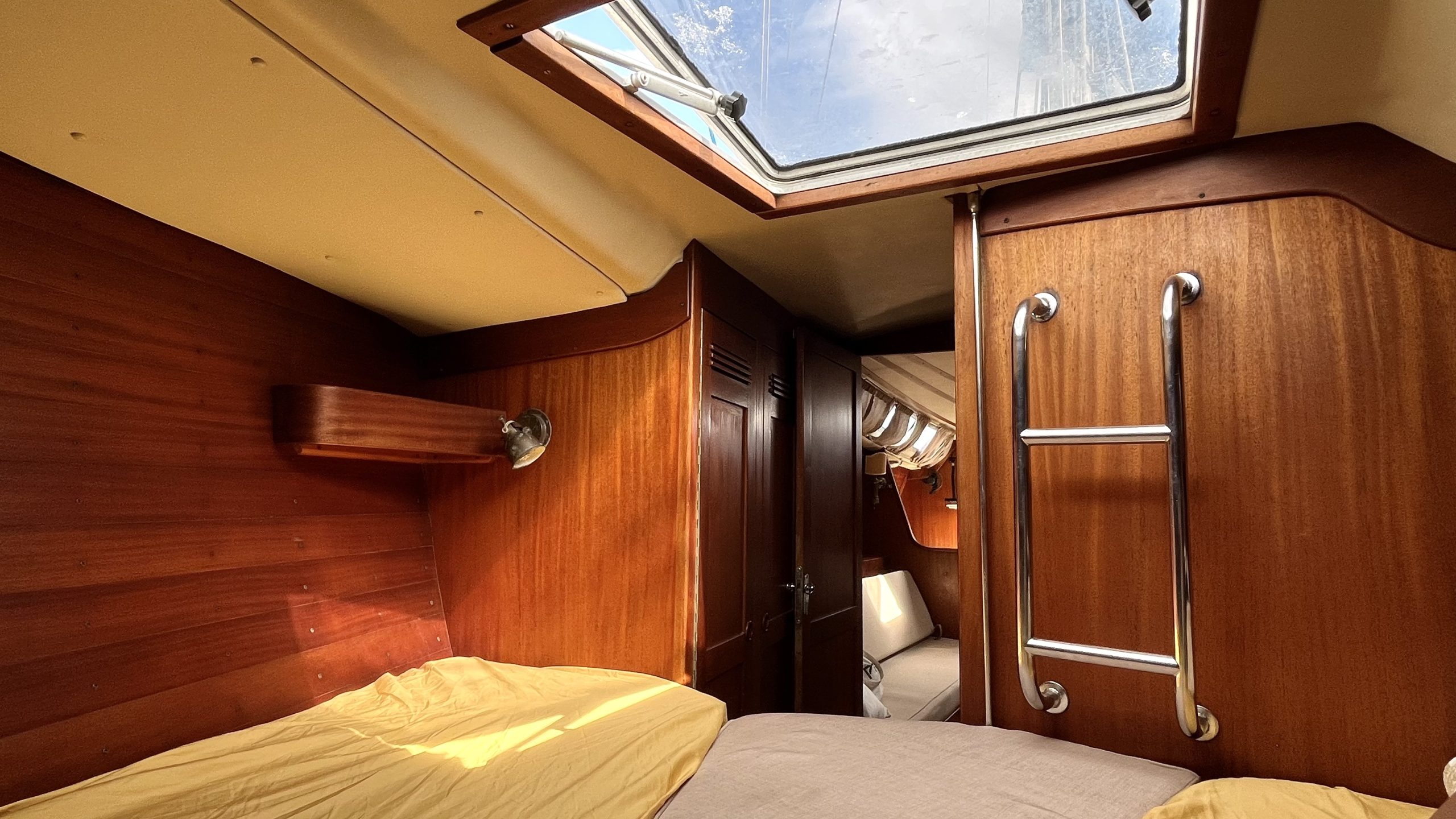 El interior es cálido, con un diseño clásico y acogedor, recubierta de madera de caoba, que genera una atmósfera natural y serena. El velero cuenta con: Dos camarotes privados, Dos baños con ducha, Un salón convertible, amplio para compartir o descansar, Cocina equipada y funcional, Espacios bien distribuidos que permiten convivir sin agobios. Aunque compartimos espacio, cada persona puede encontrar su propio rincón. La convivencia se da de forma fluida y respetuosa gracias al diseño generoso y a la energía que se genera a bordo.