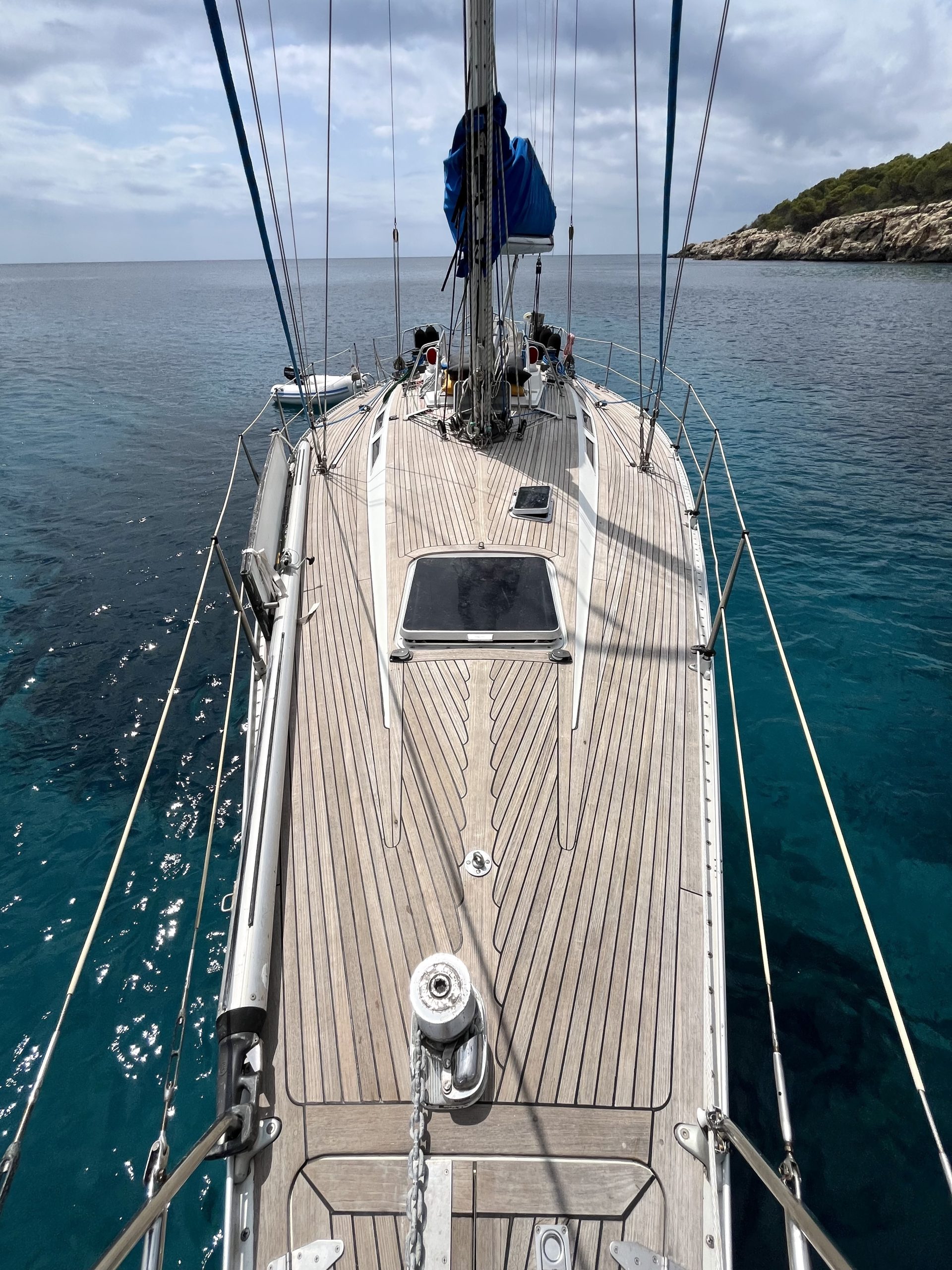 Todas nuestras experiencias en el mar tienen lugar a bordo de Ta keer, un velero Sweden Yachts C41 de líneas clásicas, elegantes y seguras. Es un barco con carácter, construido para cruzar océanos, lo que lo hace especialmente estable y fiable para navegar. Ta keer está completamente equipado para ofrecer comodidad durante toda la travesía. Su casco blanco con líneas azuladas y negras le dan una presencia sobria y distinguida en el agua. La cubierta es de teka, amplia y confortable, ideal para tumbarse, tomar el sol, leer o simplemente dejarse abrazar por el mar. En la popa, una bañera ancha y protegida crea un espacio perfecto para desayunar, comer, descansar y disfrutar del paisaje con calma.